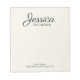 Simple, modern, and feminine off-white custom notepad with your first name across the top in a large handwritten script. Your last name sits right below in a modern sans serif font. Personalized with your contact information at the bottom