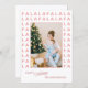 Unique, classy, trendy, pretty and decorative seasonal Christmas Holiday and Happy New Year greetings card. Cute Happy Holidays greeting text and room to customize or personalize with a photo, family name (or individual names) and message of your choice. Framed by dusty rose blush pink coloured FA LA LA word art on a white background. And a customizable season greeting poem on the backside of the card.