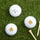 Custom golf balls with fun food icons including pizza, burger, and hot dog designs.