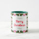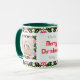 Custom Fun Jolly Christmas Green Pattern Photo Picture Tea Coffee Mug. In traditional colours of red and green, with hints of warm purple and bright orange; in a merry multicolour, maximalist pattern. For winter warmer drinks and cheerful hot chocolate on cosy nights in. Change the two photos and text to your own pictures and words, to celebrate family memories. The default text reads “Mum’s Merry Christmas Mug”, in red and green. Buy as a budget friendly festive keepsake tableware gift for her or grandparents.