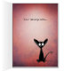 A funny and cute drawing of a stylish little black oriental cat with big soulful eyes on a pink and purple card. Add your own custom cat message inside. A beautiful oriental cat greeting or birthday card for the cat lover. From an original cat illustration by Paul Stickland for StrangeStore on Zazzle. Great cat gifts for cat lovers.