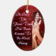 I was disappointed with the writing on the ornament. It’s just too small and can barely be seen. Also it was not as obvious on screen that the position of the hole for hanging was centered on person’s forehead. Writing that came with chosen frame is too small and can barely be seen.