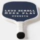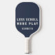 Personalized minimalist minimal simple funny inspirational motivational modern lifestyle men pickleball paddle. Timeless neutral stylish manly dusty navy blue background and off white bold sporty trendy style typography for the custom name and the humorous saying quote phrase LESS SCROLL MORE PLAY. Premium look for this sport equipment dedicated to a pickleball enthusiast passionate lover. Customizable sports gear for an active men gentleman who wants a healthy self care wellbeing wellness routine with outdoor activities and detox pause from electronic devices screens. For you or as a thoughtful custom funny gift for a friend or family member, suitable for many occasions and celebrations, like birthday, Father’s Day, graduation, retirement, Christmas, anniversaries etc. at around 100 dollars Offline real games gathering and socializing with people in person are a wise choice of lifestyle in our stressful days.