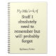 This funny personalized notebook features the text "stuff I absolutely need to remember but will probably forget" with your custom name below on different gender neutral backgrounds! Pick a colour and personalize by editing the name in the text box provided! It's the perfect gift for anyone with a sense of humour and a busy mind. Use it for jotting down to-do lists, reminders, important notes, brainstorming ideas, or even daily thoughts!