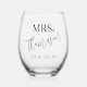 Custom Future Mrs Name Red Heart Black Text Font Stemless Wine Glass