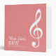 White music note (treble clef) on strawberry background (a pale to medium pink with red overtones), personalized with your full name and initials, and with your special title written in script font style... ideal to organize your music lessons, favourite musicians photos, or just for use with any other school subject.