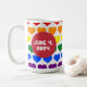 This charming mug is adorned with Valentine-themed hearts, creating a romantic and festive design. The mug can be personalized with custom names, making it a thoughtful and unique gift for loved ones. It is perfect for enjoying a cozy drink while celebrating love and togetherness. Customize the text with names and a special date.