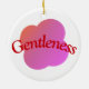 Add a stylish touch to your holiday décor with this customizable Christmas ornament. Featuring bold red typography on a clean white background, accented with a soft pink flower, it’s designed with editable text — shown here as Gentleness (you can change it to your own word). Perfect for a modern, personalized holiday tree or a thoughtful gift.