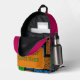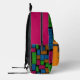 Express your unique style with this customizable geometric backpack. Featuring a vibrant, repeating pattern of abstract shapes in neon colours against a black background, this backpack is a true statement piece. The front pocket offers a perfect space to add your own text, making it a one-of-a-kind accessory for school, travel, or everyday use. Made with durable materials, it combines functionality with a bold, personalized design.