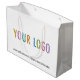 Sometimes you only need a few custom printed gift bags, so here is a great way to get just what you need in the colour and design you want. Personalize this gift bag online with your own company logo, custom text, and colour. Available in matte or glossy finish. The largest size is 12.5 inch x 4 inch x 9 inch. Made by Digiwrap. No minimum order quantity and no setup fee.