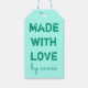 Custom teal gift tag. The font style and size can be changed by clicking on "customize further."