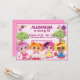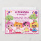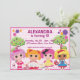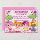 This custom girls birthday party invitation features four colourful rag dolls and customizable text to personalize it.