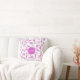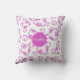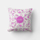 This sporty but girly soccer throw pillow features a random pattern of pink and white traditional style soccer balls - white background is customizable - customize with her name and monogram on a coordinating pink circle pendant - by katz_d_zynes