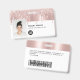 Easily personalize this Custom Glam Employee Name Badge with Photo, Scan Bar Code and business logo, with metal clip included. A trendy girly design left-aligned in cute rose gold faux foil glitter drips fully customizable in front and back sizes, sans-serif basic and modern fonts and a professional and clear look. Avaiable with or without lanyard, metal clip or with retractable. No minimum order.