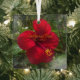 Glass ornament with a personalized message and a beautiful red hibiscus.