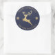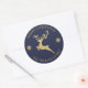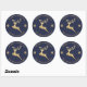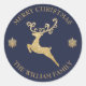 Personalized Glitter Gold & Navy Blue Reindeer Merry Christmas Round Sticker.