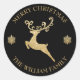 Personalized Glitter Gold & Black Reindeer Merry Christmas Round Sticker.