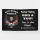 God Bless America written in bold white typeface over an eagle with spread wings in front of an antique American flag. 1776 is written in red inside a white banner. July 4 is written in white at the bottom. Change the details on the banner to suit your party!