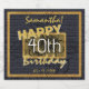 Custom Gold 40th Birthday Name Black Floral Wine Label.