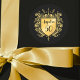 Custom Gold Crust Shield - add your name and age. Perfect for a birthday party -customize a personal and elegant crust shield with the name and age of the guest-of-honour. A stylish emblem on sticker sheets of 20 available in different sizes and shapes. This sticker are versatile and can be used on invitations, party supplies and gift favours and wrapping. The gold on black gives a luxurious feel. An eye catching element. Will give a personal and elegant touch the birthday girl or boy will appreciate and will elevate any mailing and wrapping.