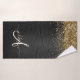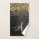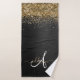Custom Gold Glitter Black Sparkle Monogram Bath Towel Set