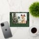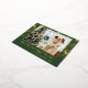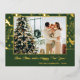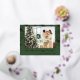 Unique, classy, trendy, pretty and decorative seasonal Christmas Holiday and Happy New Year greetings card. With room to customize or personalize with a photo, family name or names, and text of your choice. Cute golden snowflakes, Holly berries and leaves, and foliage branches pattern on a classic dark forest green background. And a customizable season greeting poem on the backside of the card, including your return address, city, zipcode and state.