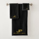 Custom Modern Elegant Template Initial Monogram Name Black And Gold Trendy Bath Towel Set.