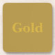 This is a square coaster with the word Gold in gold text centred on a gold background. This is a square hard plastic coaster. The coaster has a cork backing. There are six coasters in the set. You can change the text with the Personalize button. The background colour is Antique Gold.