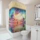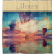 Transform your bathroom with a personalized shower curtain that is also perfect as a gift for the holidays, newlyweds, anniversaries, or birthdays! This gorgeous personalized shower curtain design features a single hot air balloon drifting into a magnificant blue, peach, gold, and orange sunrise with the water below reflecting every lovely colour. We've lifted the golden colours from the photograph and created an area for you to personalize. Bordering the scene is a wide band of dark goldish colour separating the photograph from the area for your name in the same dark shade as the band. The background for the name and border are a paler version and falls into a sandy colour range. This design is courtesy of the public domain collection of www.rawpixel.com.