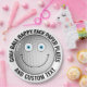 8 x personalized text sports Golf Ball custom Happy Face Large 9" Disposable Party Paper Plates - Blue Eyes version. Great for golf player / lover custom birthday party supplies or golf theme baby shower. See store for full range of personalised options. Fully personalise all text with your message(s). One-click customization of upper and lower text by clicking 'Personalize this template'. Make your own party plates for a child's birthday party or anyone who likes funny party decor.