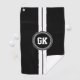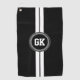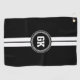 Cool customizable golf towel. Personalize with your or initials or favourite number. Makes a perfect unique gift for anyone who loves golfing. Cool double racing stripe with chequered flag circle emblem.