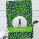 Your favourite golfer will love this design created especially for her in navy and bright green. Female golfer silhouette is placed on a realistic image of a golf ball. A coordinating ribbon completed in green is positioned slightly below the golfer and is the template for custom name or text in white script calligraphy. The background is navy blue and features a contemporary pattern of swirls and leaves in coordinating green. ALL colours in this design may be customized!