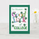 A Good Luck at College greeting card to personalise, with brightly coloured lettering, four-leaf clovers and a horseshoe for luck! A text-based,
