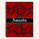 Make your notes feel enchanted with this Personalized Gothic Heart Hardcover Notebook. Set against dramatic black and grey stripes, bold red hearts pulse with romantic rebellion. A sleek black banner in the centre showcases your custom name or phrase in a haunting gothic font, making this notebook as personal as it is visually striking.