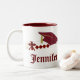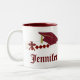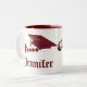 Lovely gift mug for your favourite graduating senior, with stylish graphics of a diploma and red mortarboard cap. Red graphic text reads Class of, and customizable red text reads the year and name of the graduate. Personalize for yourself or your favourite grad.
