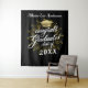 Graduation Party Backdrop. Faux gold foil look with mortarboard cap and starburst in elegant gold and black. Fully customizable -- easily add your own text, change the background colour, text size and style. Classy but festive background setting for your graduate's celebration.