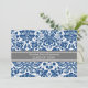 Graduation party invitation custom card in elegant and sophisticated dark navy blue, grey and white classic vintage floral damask pattern. Customize this grad announcement card by adding the year of your graduation and your graduation party details.