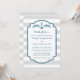 Graduation party invitation custom card with wide vintage light grey and white stripes pattern, rustic dark navy blue frame and nautical details. Customize this grad announcement card by adding the year of your graduation and your graduation party details.