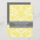 Graduation party invitation custom card in elegant and sophisticated bright lemon yellow, grey and white classic vintage floral damask pattern. Customize this grad announcement card by adding the year of your graduation and your graduation party details.