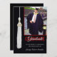 Red & Black custom graduation party invitation. Add the date, graduate's name and photo to the front of this Graduation card, and personalize info on the back. Card designed by Rycky Creations; white tassel original artwork©delightful-doodles. Contact artist for a card with your own school colours!