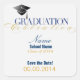 Customized by you, these elegant graduation "save the date" stickers are designed for use as envelope seals on graduation announcements! The perfect way to announce your graduation and also alert family and friends of the graduation celebration! Customize the NAME, SCHOOL NAME, and DATE of the party. To customize, simply click the customize button below the item and type in your information using the guide tools.