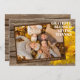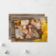 Unique, classy, trendy, pretty and decorative Thanksgiving holiday card. Unique, classy, trendy, pretty and decorative Thanksgiving holiday card. Cute GRATEFUL BLESSED GIVING THANKS text and room to customize or personalize with a photo and names (or family name) of your choice. With cute classic warm yellow fall Mums flowers on a weathered looking grey rustic farmhouse inspired barnwood planks pattern background design. And a customizable season greeting poem on the backside of the card.