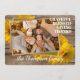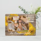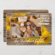 Unique, classy, trendy, pretty and decorative Thanksgiving holiday card. Unique, classy, trendy, pretty and decorative Thanksgiving holiday card. Cute GRATEFUL BLESSED GIVING THANKS text and room to customize or personalize with a photo and names (or family name) of your choice. With cute classic warm yellow fall Mums flowers on a weathered looking grey rustic farmhouse inspired barnwood planks pattern background design. And a customizable season greeting poem on the backside of the card.