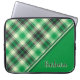 A Green And Black Plaid Laptop Sleeve Done In A Green Half Solid And Plaid Pattern Just Add Your Name.