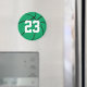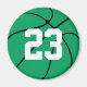 Custom Green Basketball Round Fridge Magnet: Make your own personalized green basketball fridge magnet by typing your own jersey number or other text such as team name or initials, player name or initials, school letters, etc. You can also delete the placeholder text and leave it blank if you just want a simple green basketball magnet. These work great as affordable team gifts for players, coaches and fans of basketball teams with green team colours – discounts are available for bulk orders. They can also be used as senior gifts for your high school or college basketball seniors, or just as a unique birthday or Christmas gift for bball fanatics.