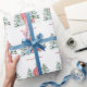 Wrap your gifts in cozy countryside charm with this customizable wrapping paper featuring a red barn nestled deep within a lush green pine forest. The snowy ground and soft watercolor textures evoke rustic holiday snowy Christmas cards and classic festive illustration vibes, while the clean white background keeps the look fresh and modern.