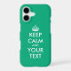 Custom green Keep Calm and Carry On iPhone Case. Create your own funny Keep calm and carry on parody. Customize background colors and text the way you want it. Trendy smartphone covers with crown.