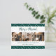Custom green photo wedding announcement holiday postcards featuring a starry green background with 3 photos in the centre and a beautiful hand-lettered script title above. Easily personalize this green holiday postcard with your images, message, and your family name. You can also personalize the font and change the colour of the text and the background as well.