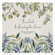 Delicate watercolor foliage in soft greens, plums, and dusky blues frames the text, evoking a peaceful orchard or cottage garden. A circular monogram at the base allows for personalization—perfect for marking a special home, honouring a loved one, or giving as a thoughtful housewarming, retirement, or wedding gift.