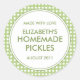 These personalized canning stickers are stylish and practical. Easy to customize with your name, and the kind of treat or preserve, and the date the food was created. This pretty canning label has a border of green with white polka dots and green text.